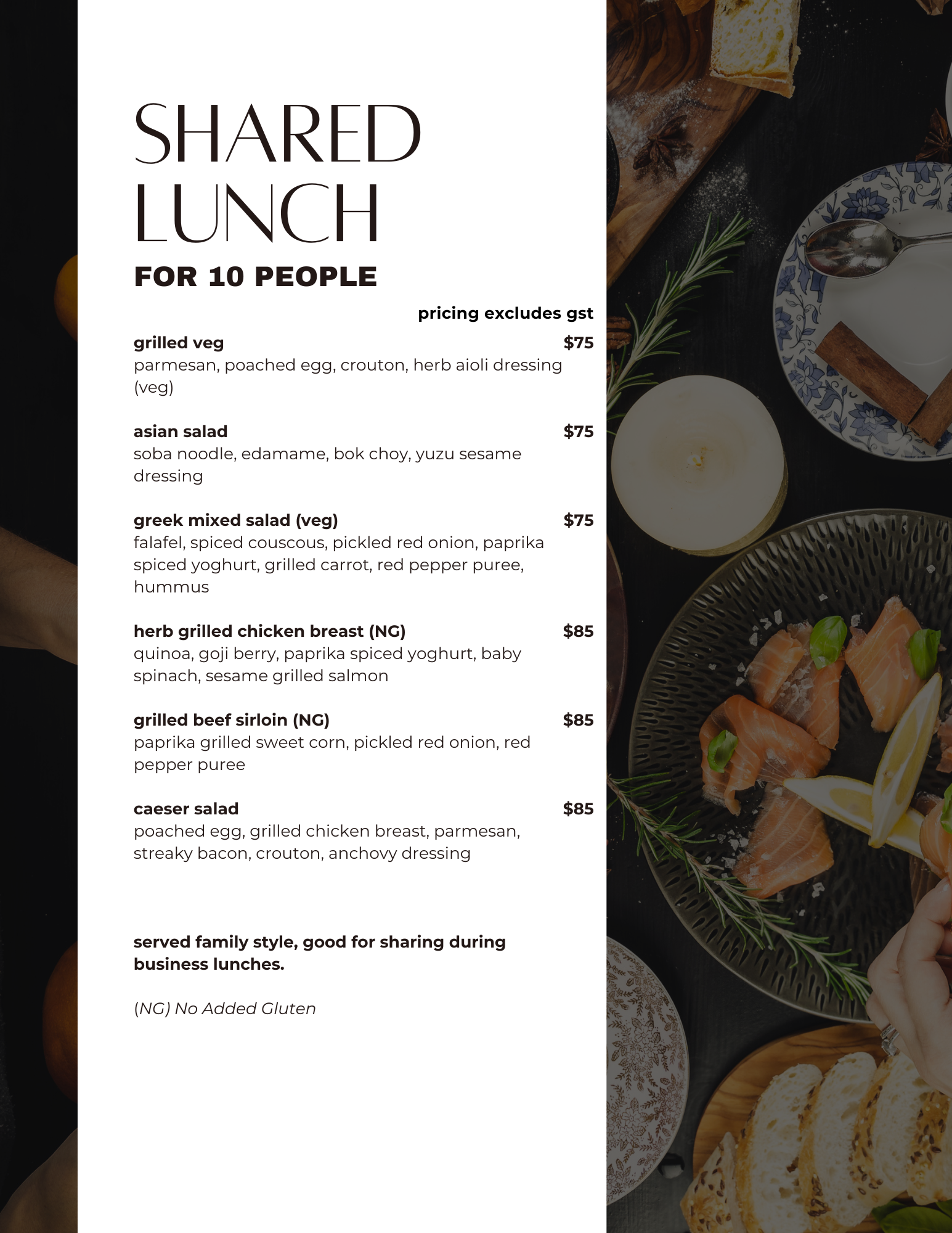 cold smoked salmon, capers, pickled red onion, cream cheese, lemon $19.5